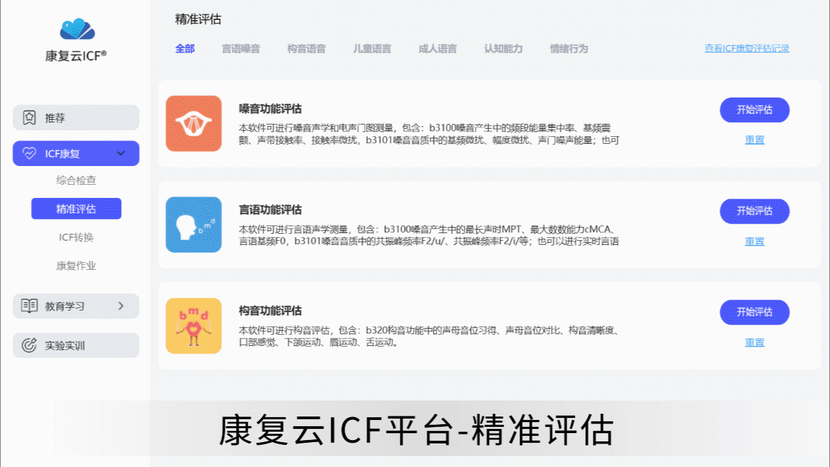 用于语言、发声治疗的实训课程,包括方案制定、示范、训练脚本。